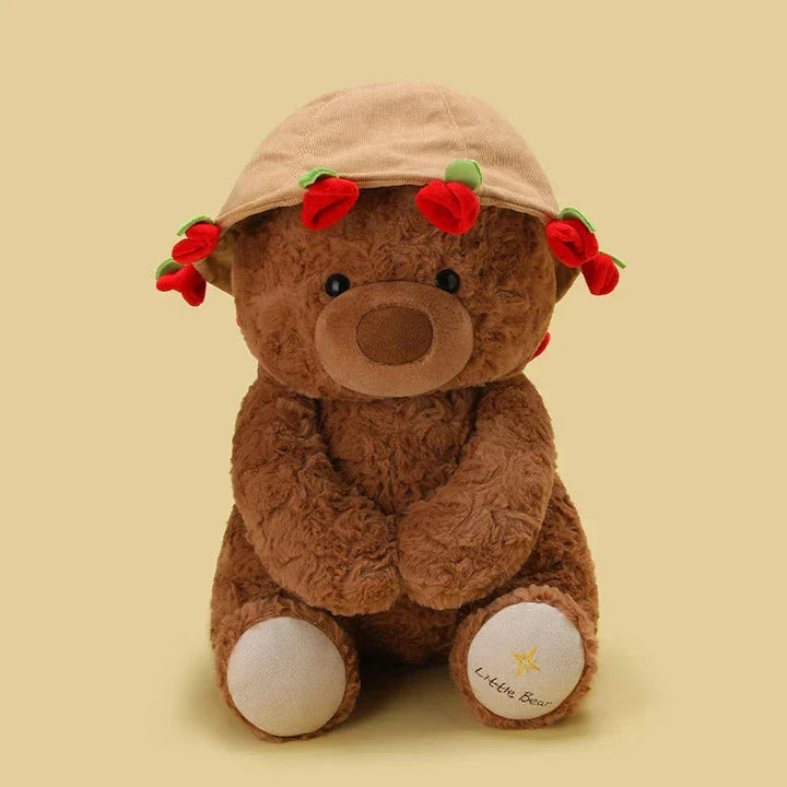 Meet Bloomie & Maple, the cutest teddy bears with a blooming surprise! At first glance, they're just the cutest little bears wearing a flower-crowned hat… but the hat can transform into a beautiful rose bouquet!