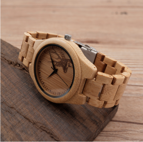 Worn with casual clothes or daily business attire, this wooden watch for men is a versatile addition to any outfit. Featuring a stylish bamboo wooden casing and band, it's a piece that will match just about anything and stand out as a unique accessory. Precise and practical, quartz movement makes this piece ideal for everyday use. A fold over clasp provides a secure, comfortable fit on your wrist.