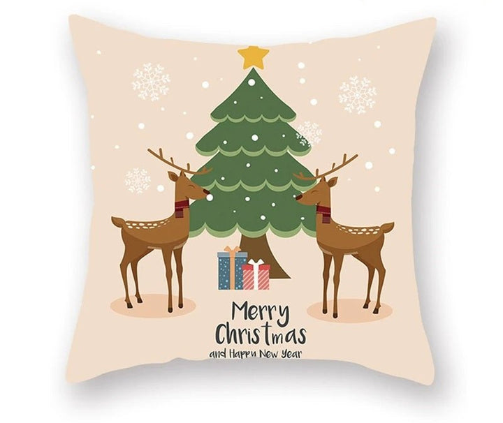 Christmas Cushion Cover – Festive Santa & Elk Design for Holiday Decor & Perfect New Year Gift