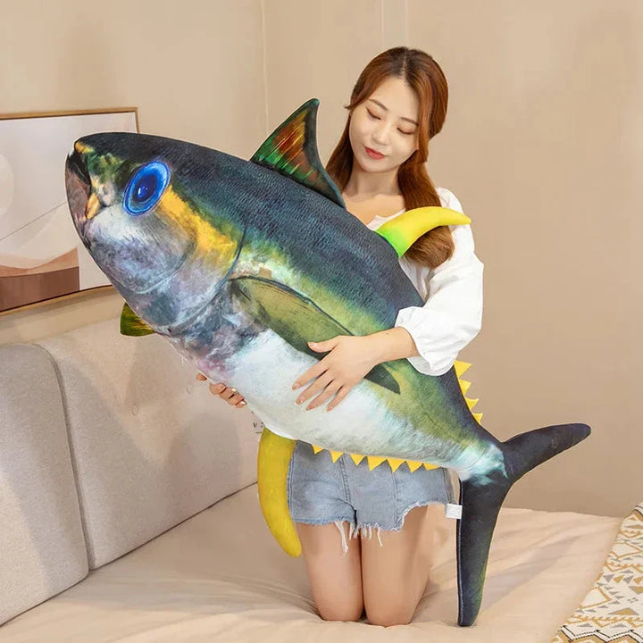 Meet Colby, your new full-sized fishy friend that's making waves in the cuddle world! This ultra-realistic tuna plush isn't just massive, it’s mahi-gnificent. From its detailed scales to its vibrant yellow fins, Colby is the perfect mix of quirky, comfy, and eye-catching. Whether you’re lounging, sleeping, or need the world’s most unexpected body pillow, Colby’s got your back (and your sofa).