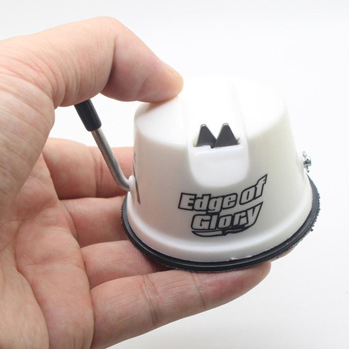 With the Glory Knife Sharpener, you can restore your old, dull knives to like-new levels of sharpness in just moments! The secret is the Edge of Glory's dual hardened Tungsten Carbide teeth. Its super-suction base sticks to any surface, and then all you do is swipe any knife through the Glory Knife Sharpener. Now you can slice, dice or chop with ease! The Glory Knife Sharpener works on all kinds of knives – even serrated blades – and saves you the trouble of having to buy an entirely new set of kitchen knives.