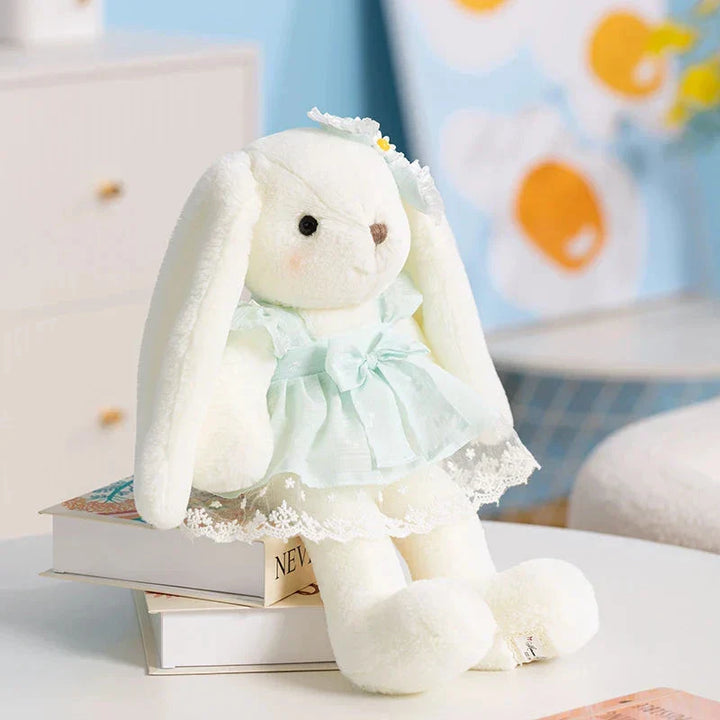 Meet Fuwawa, the plush bunny that feels like cotton and hugs like a dream. Dressed in delicate pastel dresses with fluttery lace, Fuwawa is the definition of gentle comfort — a quiet companion for slow mornings, bedtime cuddles, and everything in between. Her long floppy ears, starry eyes, and soothing colors are designed to calm your space and warm your heart.