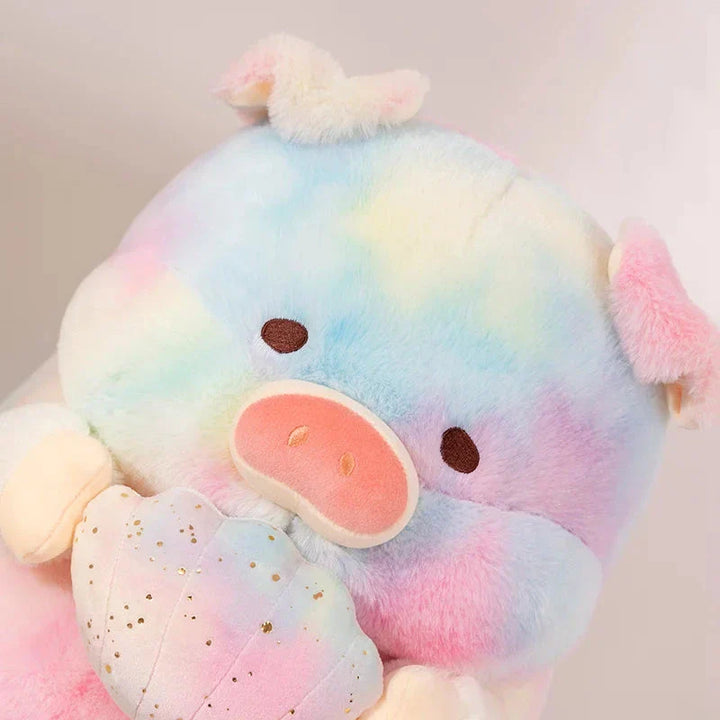 These cute piggy plushies understand that life can sometimes be stressful, and they're here to offer their support whenever you need it. Features a galaxy rainbow fluffy outer texture while holding a seashell, ready to spread love wherever they go.