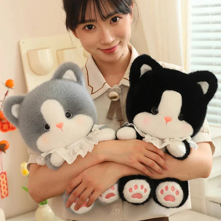 Say hello to Kuro and Neko, two 30cm fluffy besties with big round eyes, soft blushing cheeks, and the sweetest lace collars. Kuro is the mischievous black-and-white kitty who loves naps under cozy blankets, while Neko is her calm and gentle friend who prefers to daydream by the window. Together, they’re the perfect pair for hugs, cuddles, and comforting company.