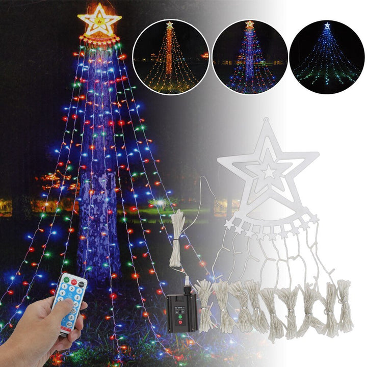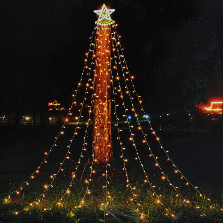 Led Five-Pointed Star Waterfall Mountable Christmas Tree Light for Yard Outdoor Deco