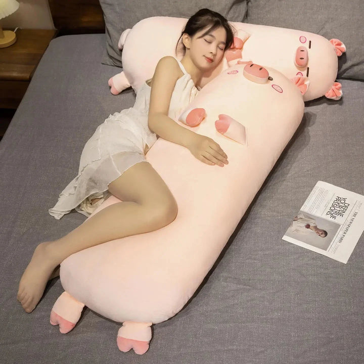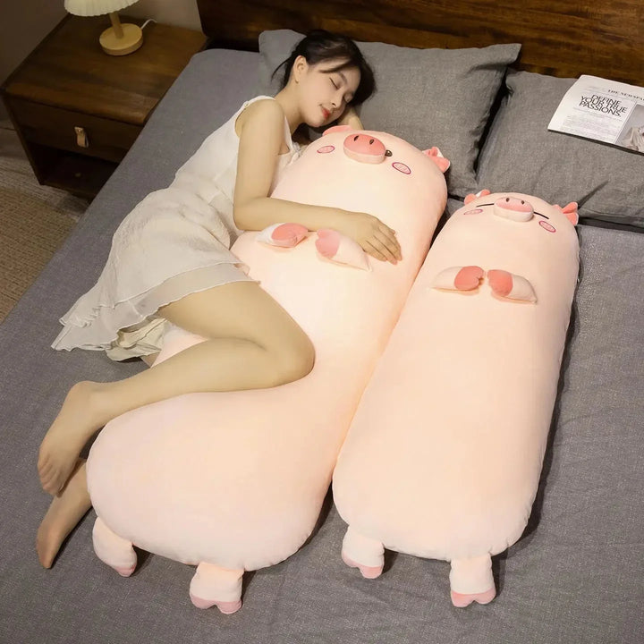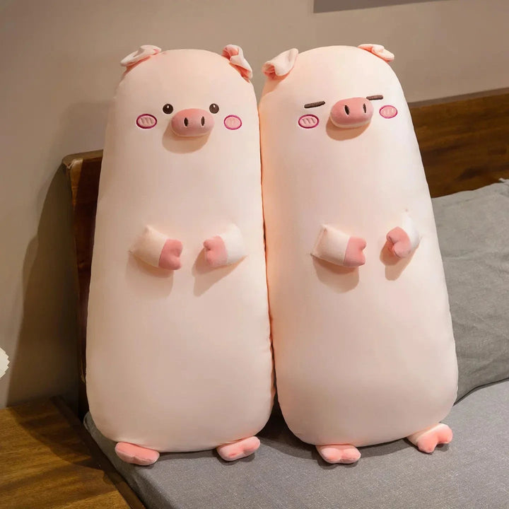 Looking for the ultimate cuddle companion? Meet your new bedtime bestie, our long pig plushies are soft, squishy, and ridiculously cute. With their rosy cheeks, long, firm bodies, and gentle piggy faces, these plushies are made for snuggling, lounging, or just looking adorable on your bed.