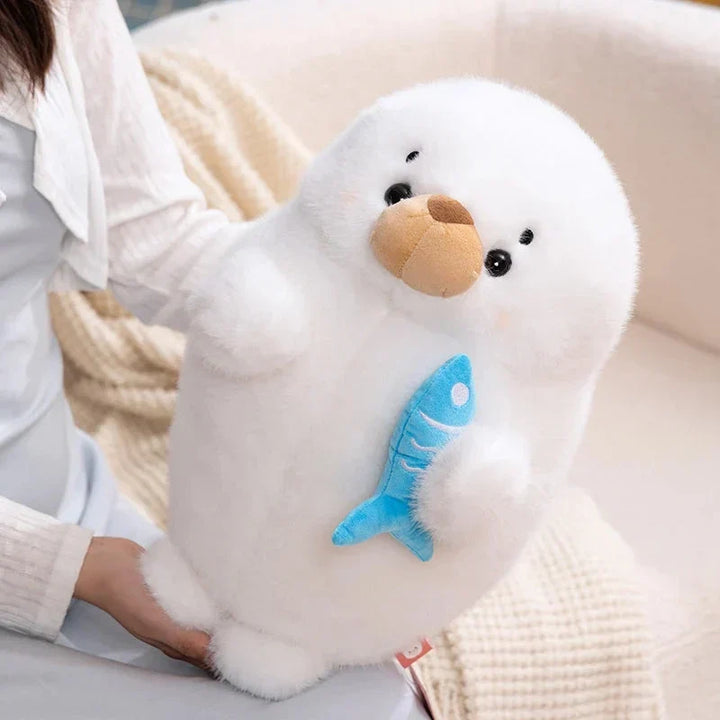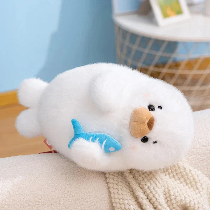 Say hello to Mochi the Seal, the softest little sea bean you’ll ever meet. Complete with a squishy belly and a floppy fish snack in hand! Whether sitting up like a proud chonk or lying down like a sleepy blob, this seal brings instant joy and comfort.