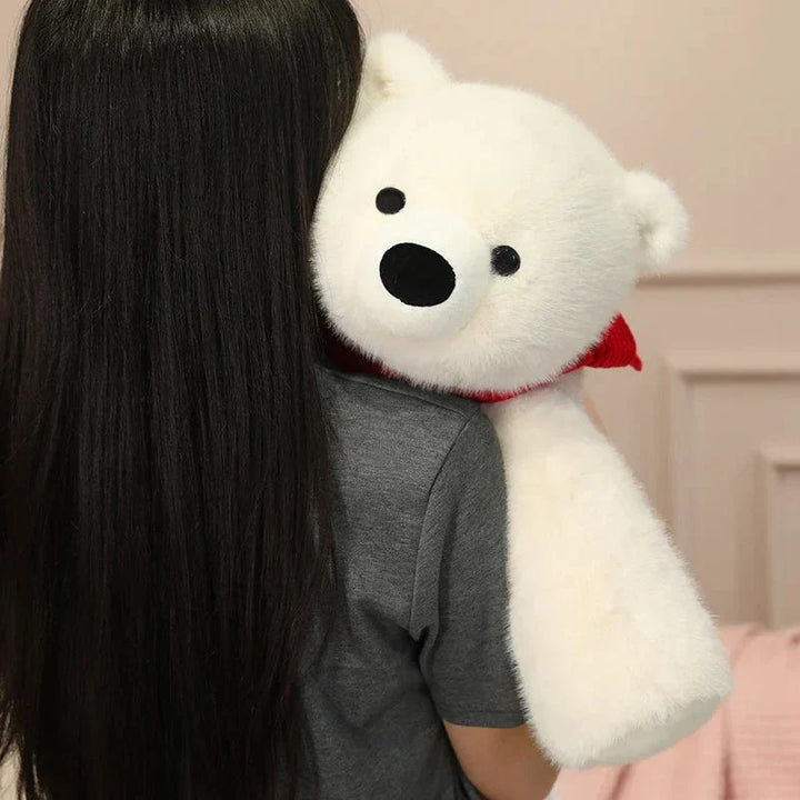Meet Momo, the soft-hearted polar bear in a cosy red knit scarf, always ready to warm your soul (even if she comes from the Arctic). With her snowy white fur, huggable long arms, and gentle face, Momo is the ultimate cuddle companion, whether you're sipping hot cocoa, curling up with a book, or gifting someone a bear hug that lasts.