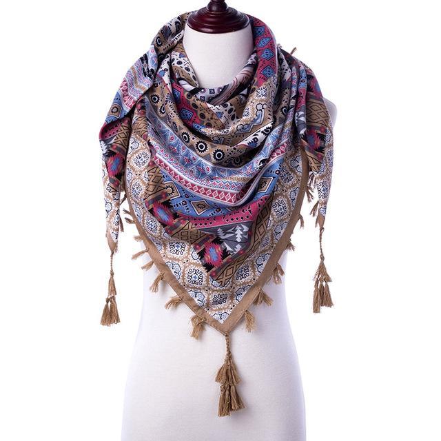 Printed Designer Fashion Warm Women Scarf With Tassel