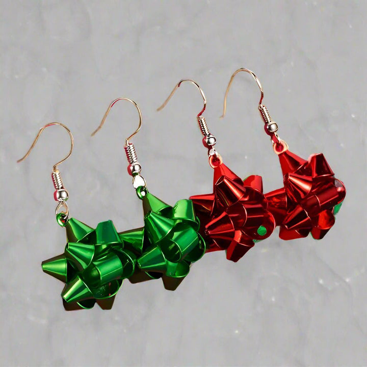 Sparkling Christmas Gift Bow Star Earrings – Trendy Christmas Earhooks for a Festive Fashion Statement & Perfect Holiday Gift