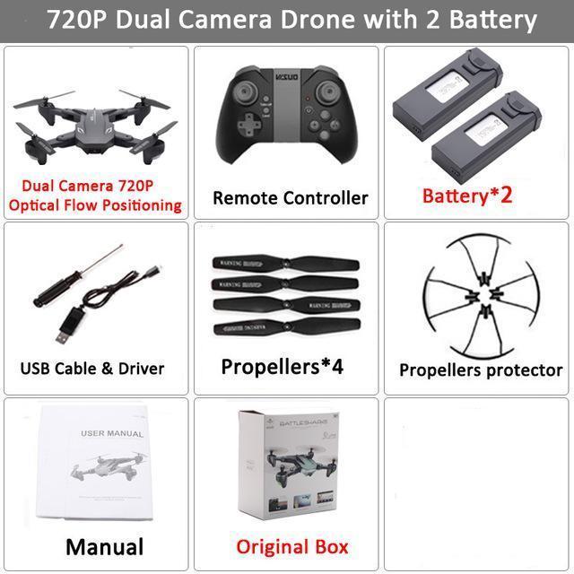 The quadcopter drone has 4K HD camera that can take ultra-cleardrone photography. It can transmit real-time video with angle adjustment. The double lens allow the flying drone to capture wonderful, wide-angle, and split-screen images. It can add background music, beauty filter, and 360-degree view to drone video shooting.