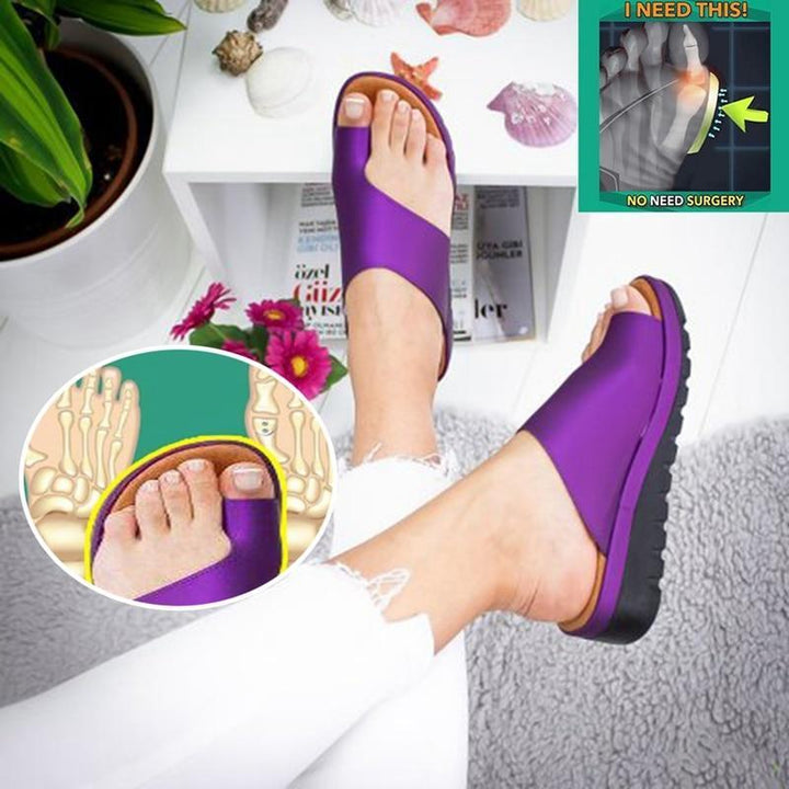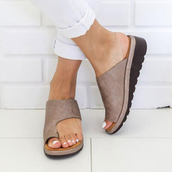 Women Leather Shoes Flat Sole Lady Casual Soft Toe Foot Correction Sandal